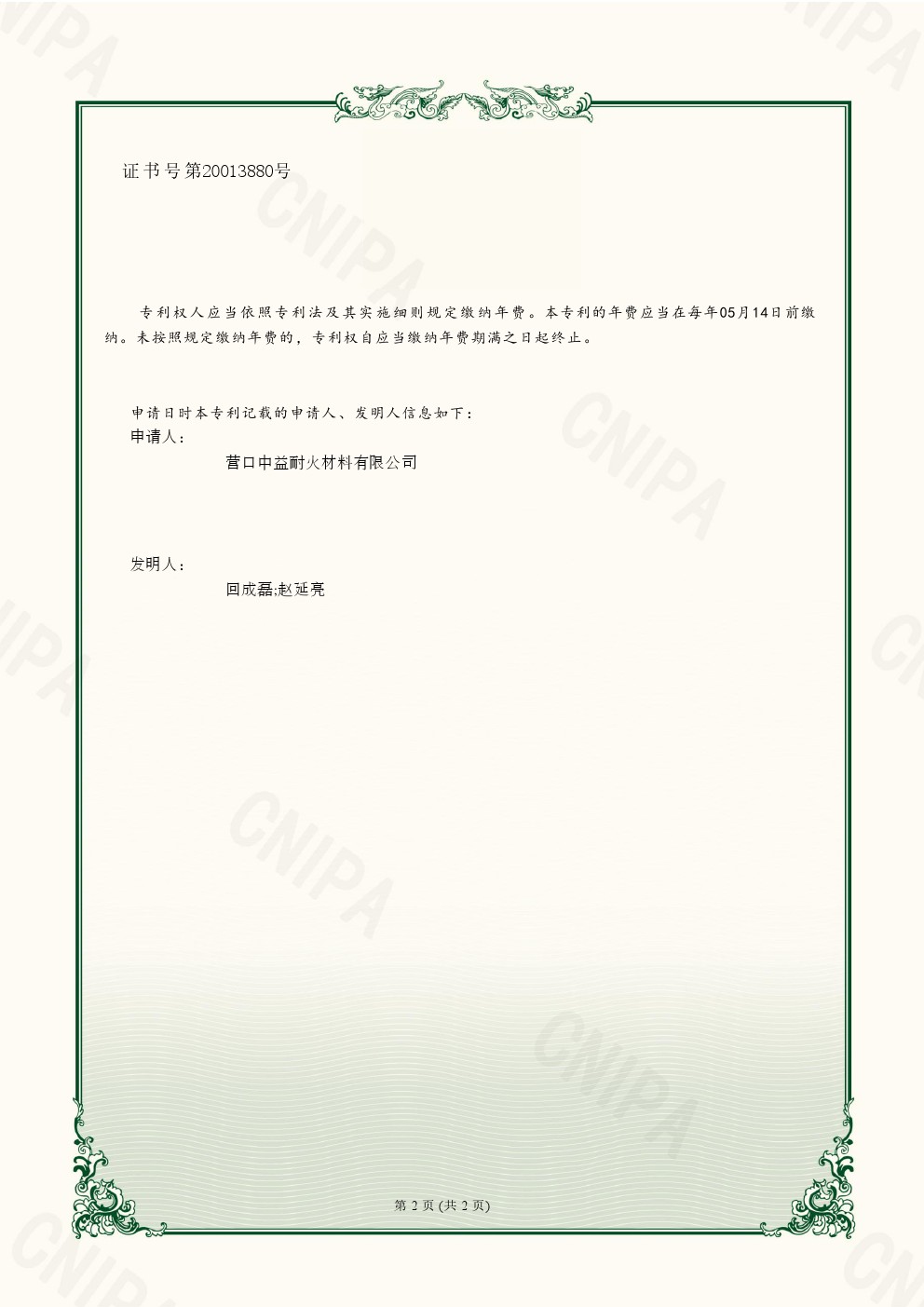 | 實(shí)用新型專利證書一種耐火磚壓制上料設(shè)備 |